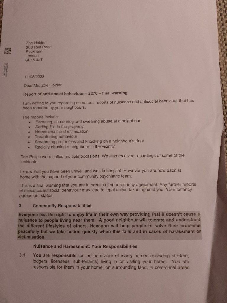 At first I could not understand the hostility I was facing from employees and contractors situated at the Hexagon Housing Association head office based in Sydenham.