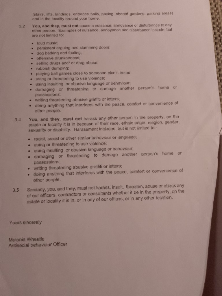 I contacted the Anti Social Behaviour Unit Situated at my housing provider. And spoke and emailed at length Mr Syeed Noor. He wasn’t very forthcoming in his approach to my concerns