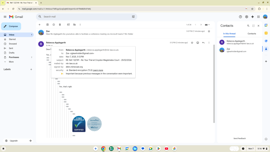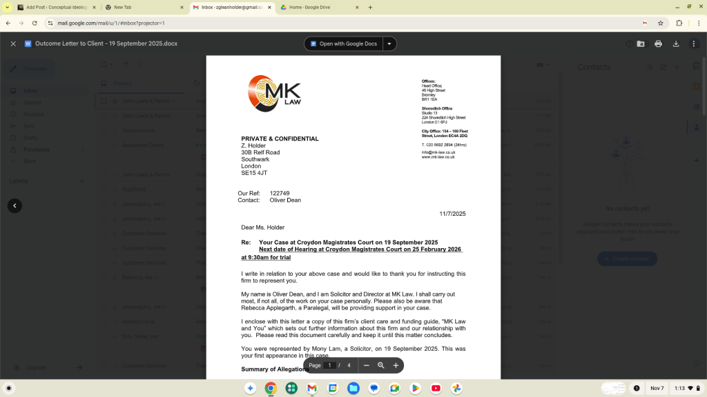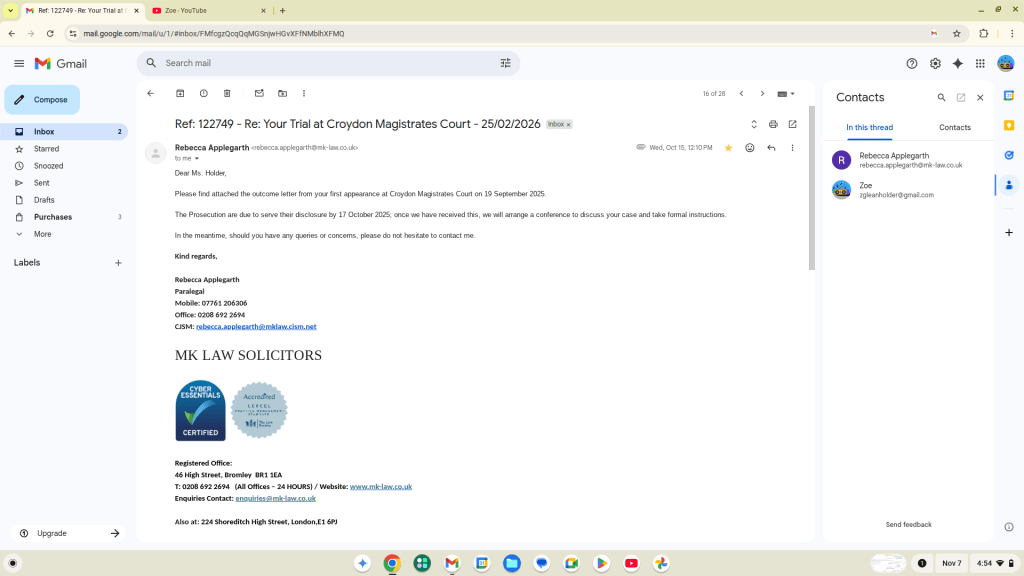 Correspondence From MK Law Solicitors in Relation To False Allegations of Common Assault